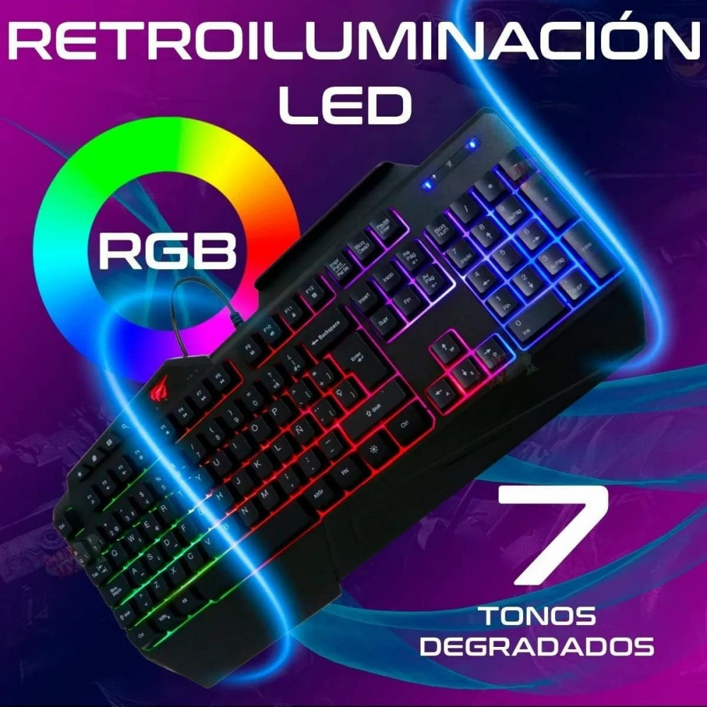 - لوحة مفاتيح غشائية مع مفاتيح بخاصية الاستجابة لضربات مفاتيح متعددة وإضاءة ليد ار جي بي